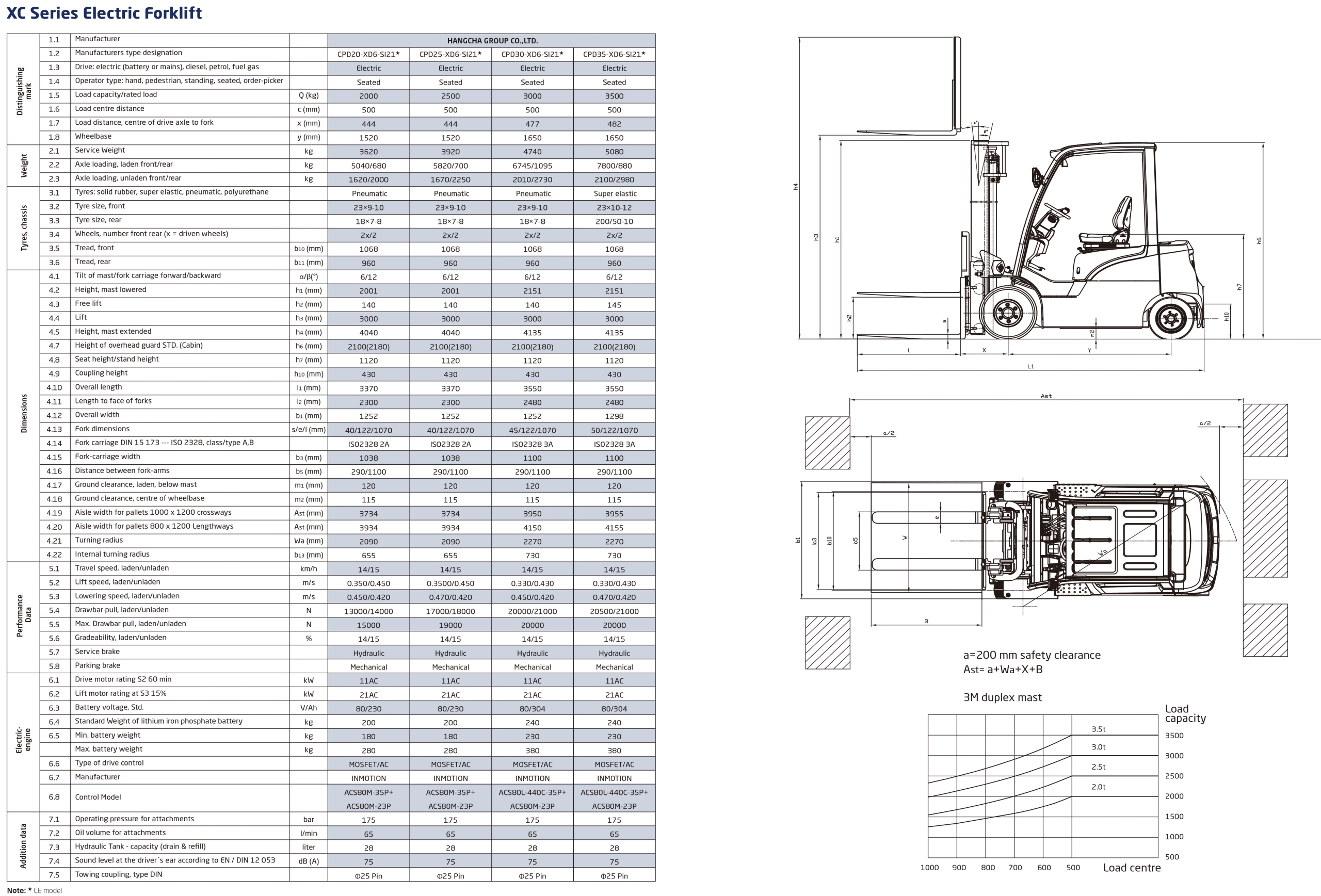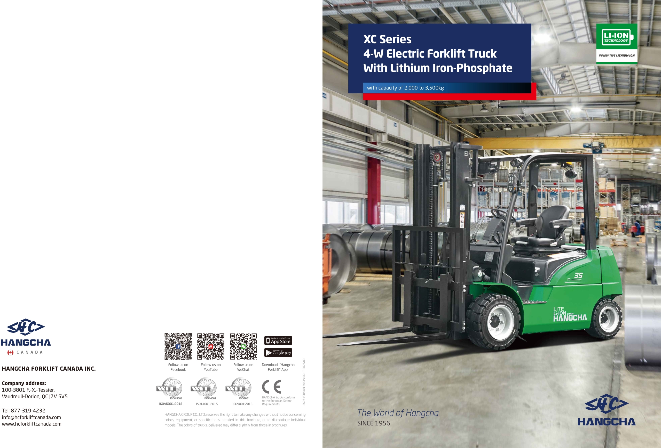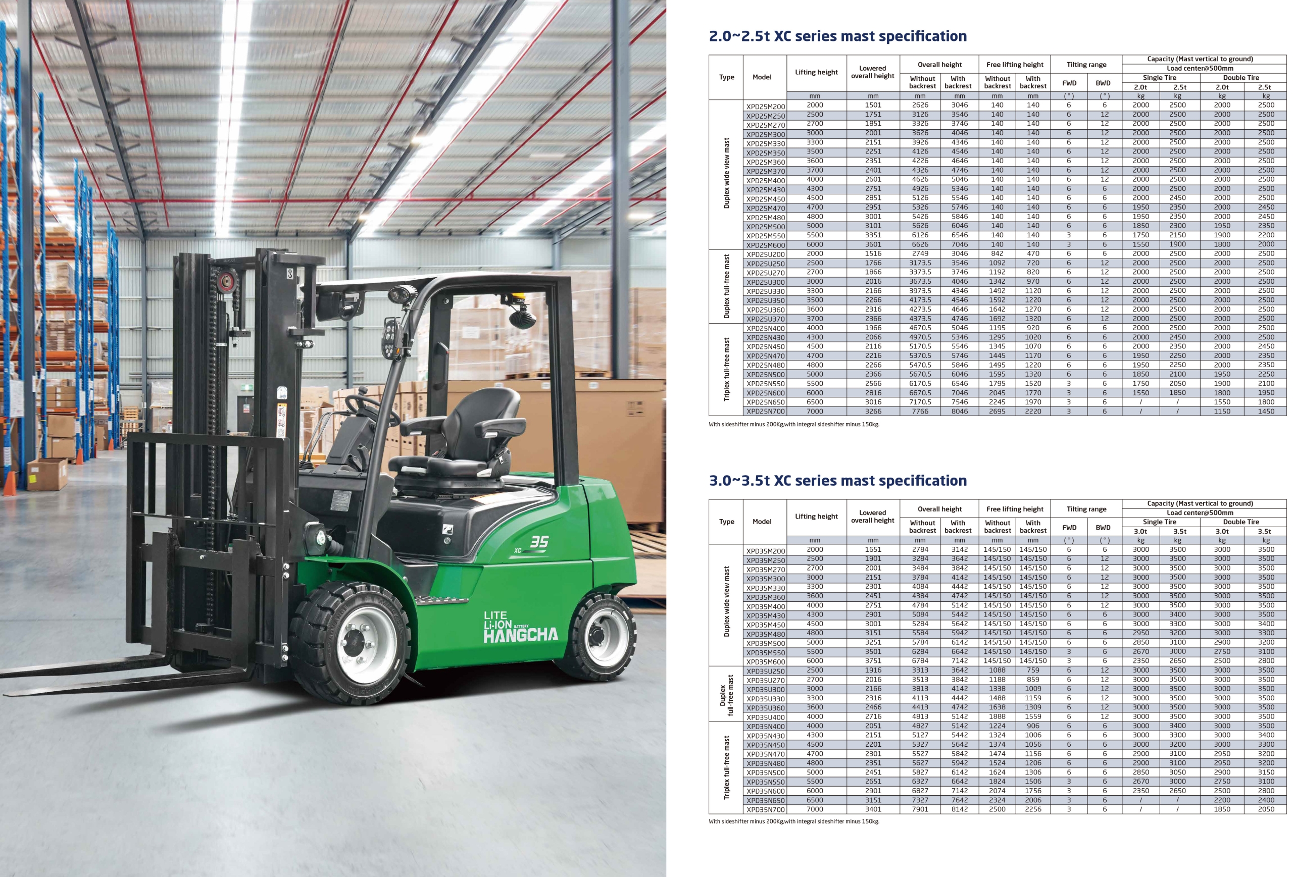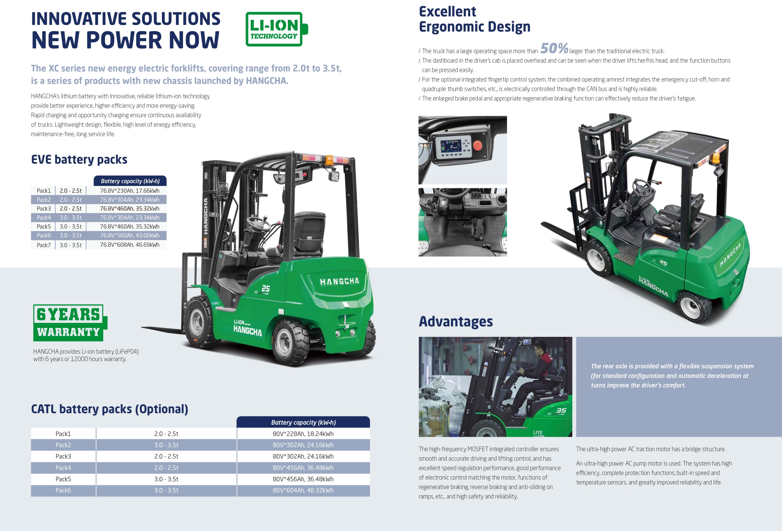 The XC series new energy electric forklifts, covering range from 2.0t to 3.5t,